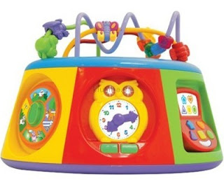 Игровой центр Киддиледн "Забавные насекомые". Лично у меня этой штуковины нет, но есть у моей подруги. Хорошая игрушка. По периметру куча разных тем с кнопочками, вертелками, лампочками и т.п. Лично мне больше всего понравился светящийся вентилятор и гитара (на фото их не видно). Сверху пластиковые струны, по которым можно двигать насекомых. Возраст: от 5-6 мес. Цена ок. 400 грн.
